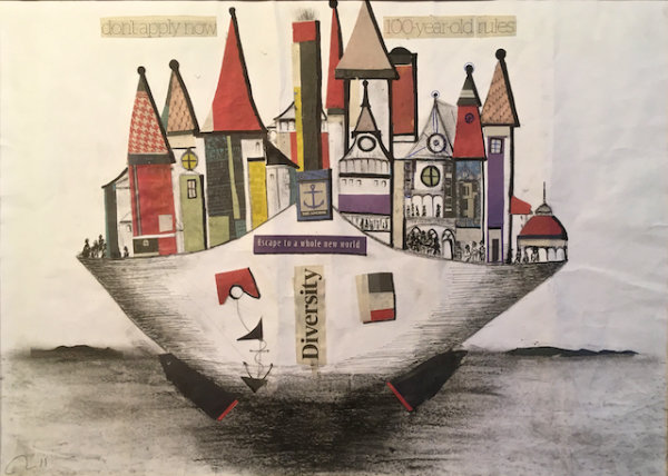 This is from Azad’s series ‘Ship‘. This Series reflects the many peoples now ‘adrift’ in the world. The United Nations reports that the world now has the highest number of refugees and displaced people since the end of the second world war.