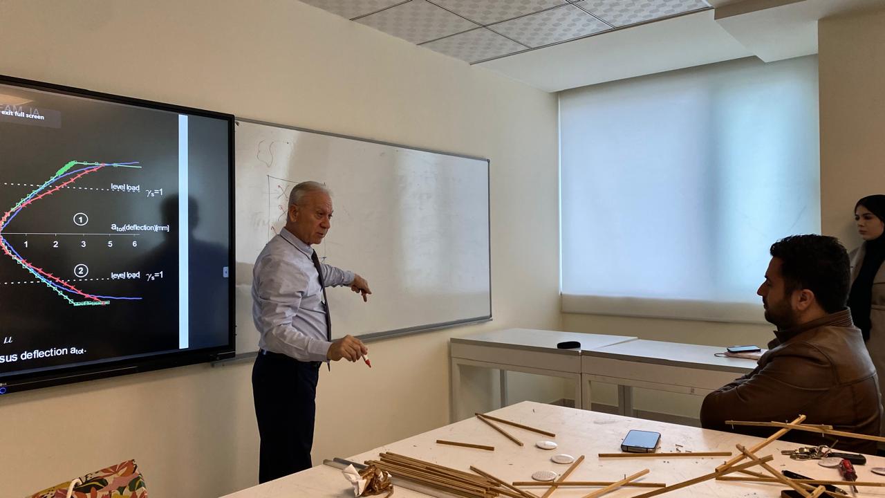 In collaboration with the Department of Interior Engineering Design, Faculty of Engineering at Tishk International University (TIU), organized a two-day Reciprocal Frames Training Course on November 26th-27th, 2023. The event, which was organised by Assoc. Prof. Dr. Sabah Shawkat from the University of Bratislava, Slovakia, was centred on the incorporation of tensegrity principles into architectural structures, with a particular emphasis on the development of designs that work in harmony with natural forces.