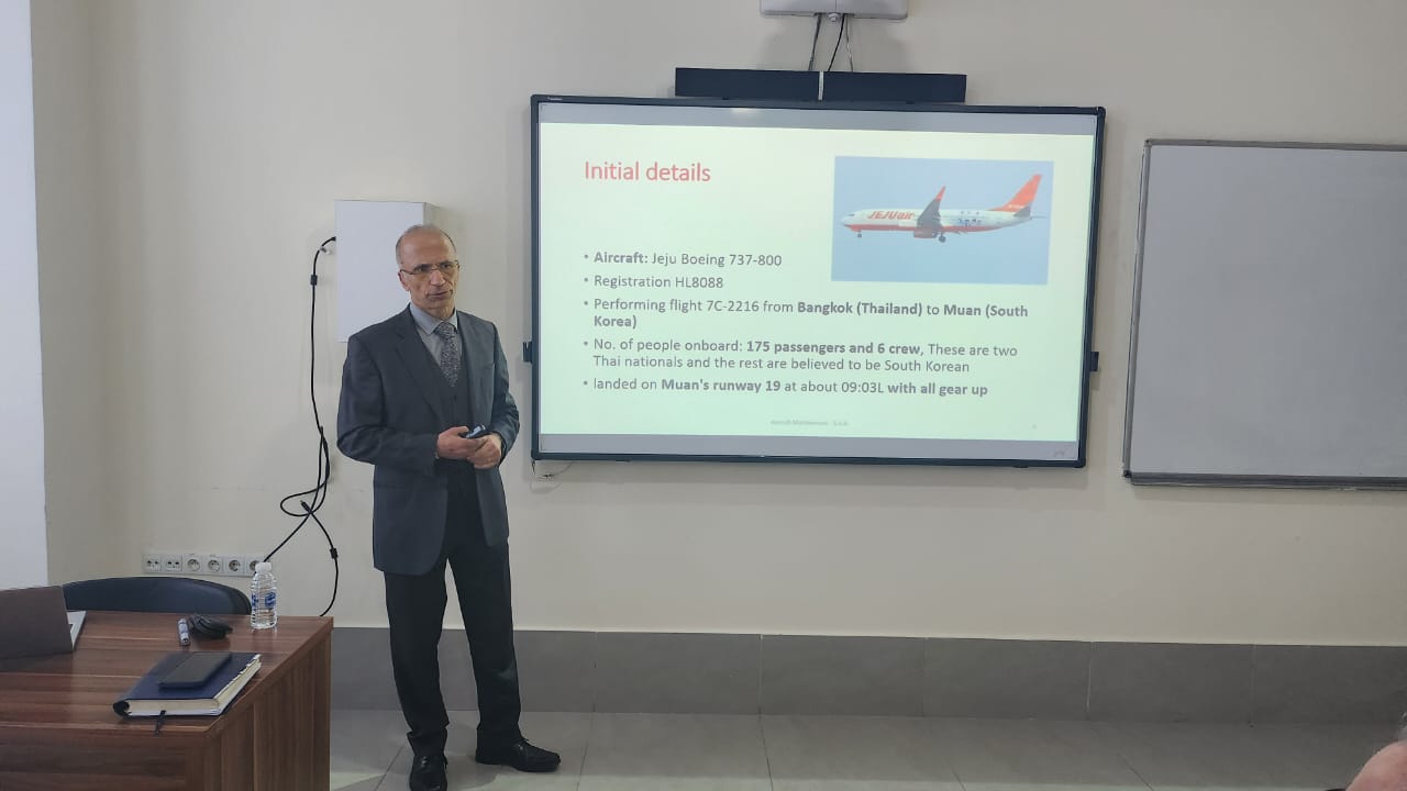 Dr. Soorkeu delivered an insightful presentation examining aviation maintenance management through the case study of the Jeju Air Boeing 737 incident at Muan Airport. The seminar integrated real-world accident analysis with technical aircraft system insights.