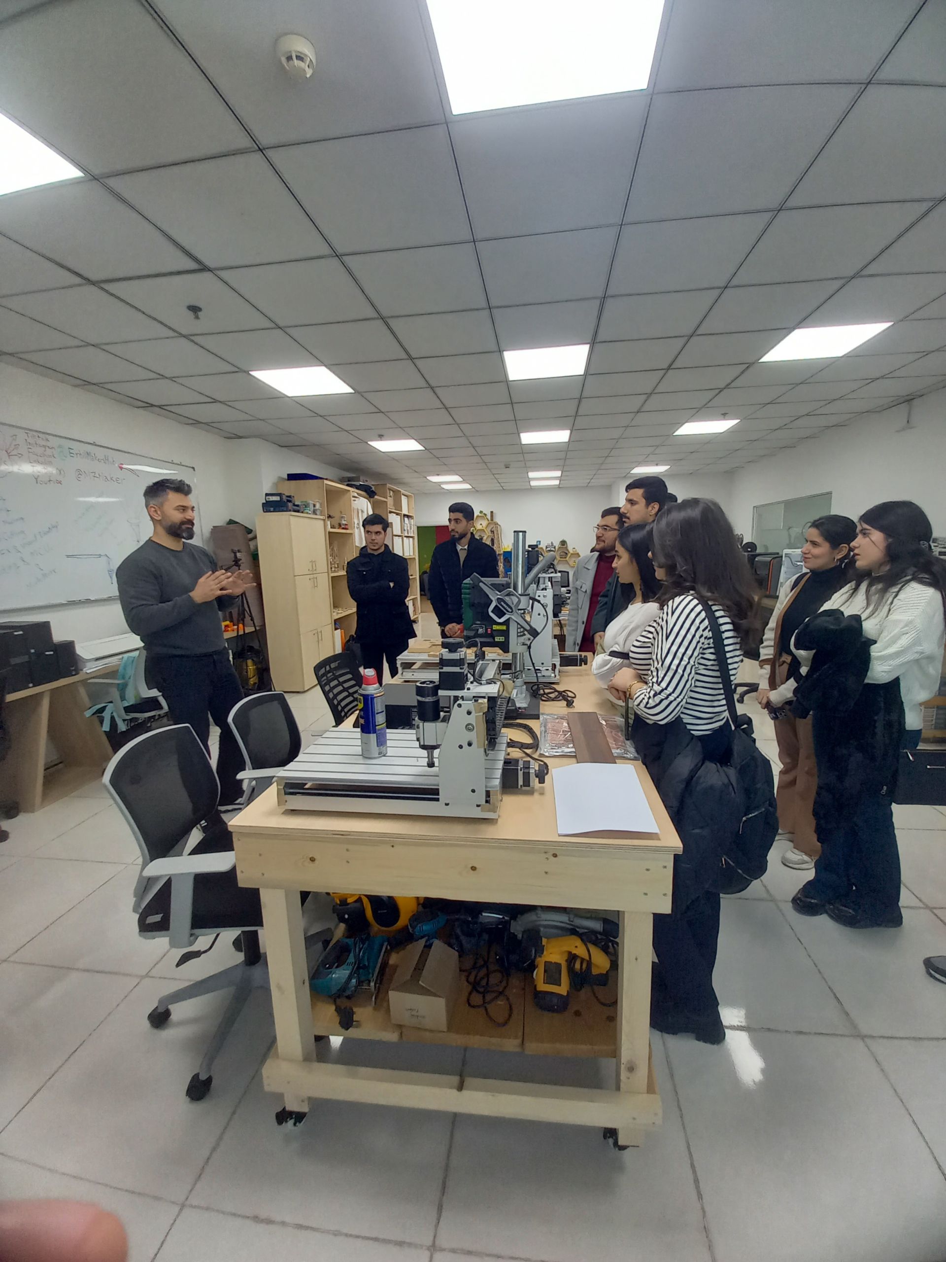 On February 11th, 2024, the students and staff of the Aviation Engineering Department, Faculty of Engineering at Tishk International University (TIU) headed on a field visit to the Erbil Makers’ Hub Office, for an introduction to their facilities. Mr. Mohammed Alsad, Founder of the Makers’ Hub, received the delegation and, on a welcoming note took them through their technical facilities, including 3D printing, laser cutting, CNC machinery, and scanners. The students showed interest and engaged their host in questions and inquiries. In the end, the students and staff were treated to refreshments and offered dedicated support in training and aviation engineering project support. It was a memorable visit where the foundation laid for future coordination and mutual benefit. “