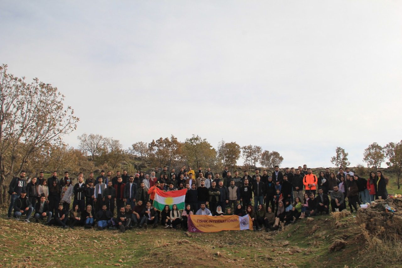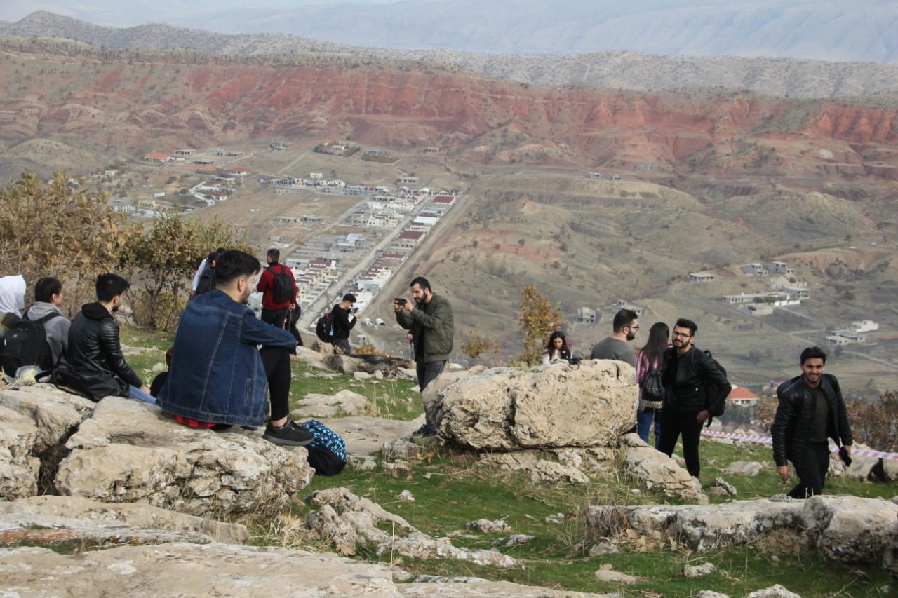 - Students and staff carrying Kurdistan flag on the top of Safin Mountain
