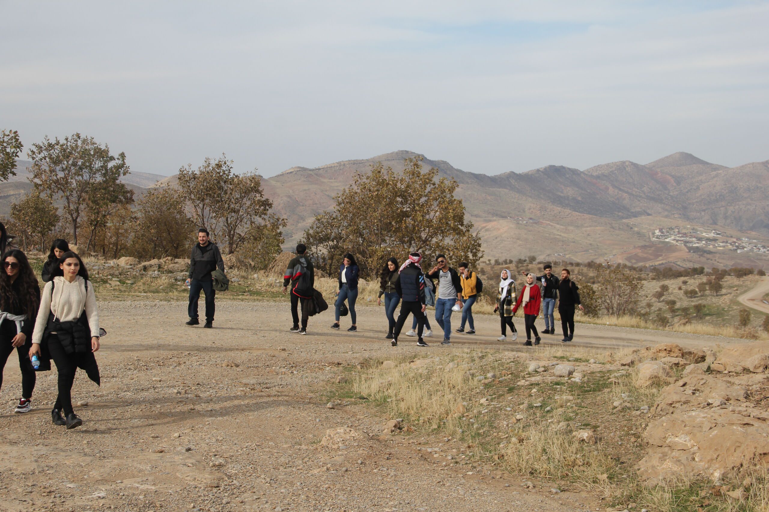 All participants gathered at the University campus and set off at 8:00 AM. All members were asked to prepare their belongings at home, and ensure they are well equipped in order to remain well hydrated and nourished throughout the journey. Omar Adulrazaq, a Archutecture Engineering Student, and Mohamad Nihad, Civil Engineering Alumni, guided the group during the trip. The team was further joined by two students from the Nursing Faculty, Mohamad Harem and Azad Othman, who accompanied the group as First Aid Staff. Approximately 240 students from different Engineering Departments participated in the trip.