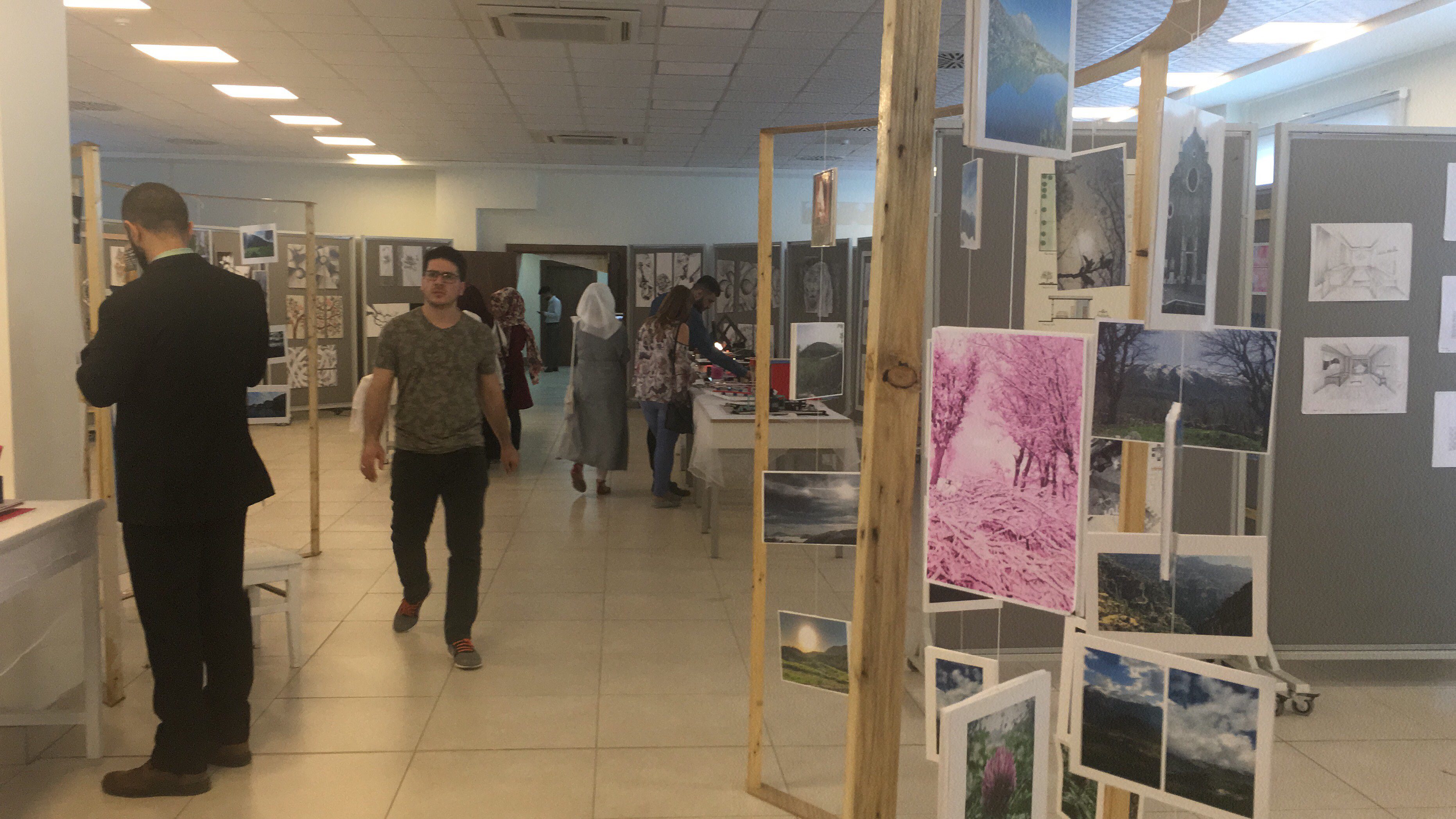Interior Design Department organized his 2nd Exhibition (Art and Design Exhibition) for Tishk International University students on 15th May 2018. Dr.Edris Hadi head of the board of trustees and president of Tishk International University, Mehmet Ozdemir, Ali bala, Mr Haval head of Interior Design Department opened the exhibition. The event was organized by the head of Exhibition Committee Mrs.Siba Kady with the help of a group consisted of 2 lecturers 4 research Assistants and 30 volunteer students. The purpose was to give opportunity to the talented students to present and show their works and arts consisting of: professional photography, painting with pencils and watercolours, calligraphy,2D composition drawings, 3D composition models, students design work,2 pieces of rehabilitated chairs, And live music was played by one of our student during the Exhibition. The following activities have been exhibited during the Exhibition: 92 photography, approximately 200 paintings, 9 design models and 15 3D composition models. Live music was played by one of the civil engineer students during the exhibition. The Exhibition had visitors not only from Tishk International University but also from both Salahaddin University and Cihan University.