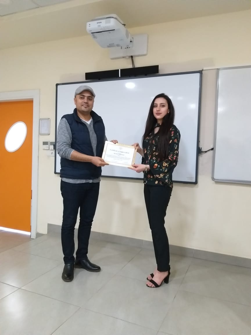 for their preparing and presenting Best Poster in “Poster Competition Exhibition” for Academic Debate course during the academic year 2018-2019 Among Science and Engineering Faculty at Tishk International University (TIU)/ Erbil-Iraq.